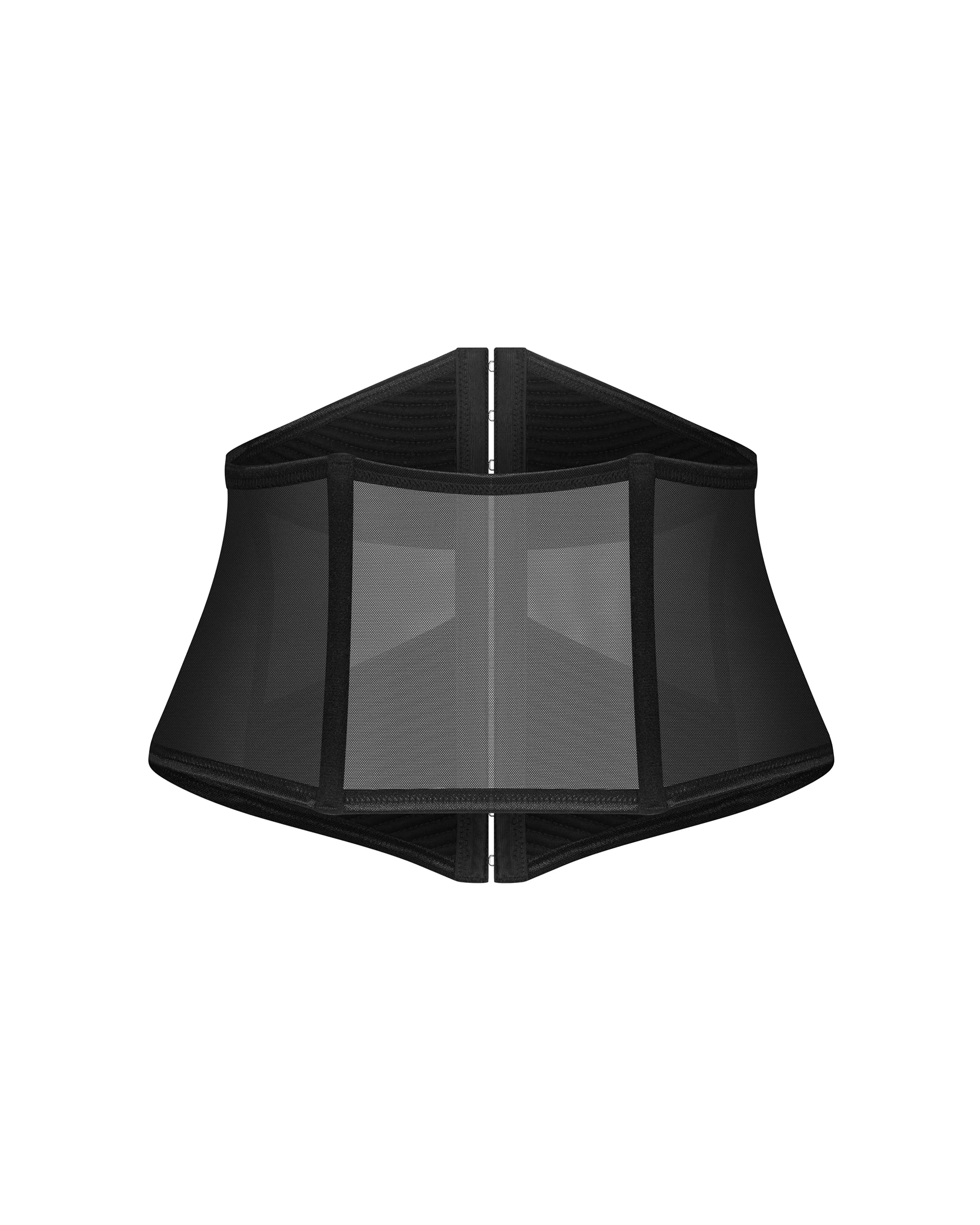 Gorset wykonany z recyklingowych materiałów z ozdobną teksturą. Pionowe fiszbiny optycznie modelują sylwetkę, a starannie wyprofilowany krój podkreśla talię i zapewnia komfort noszenia.